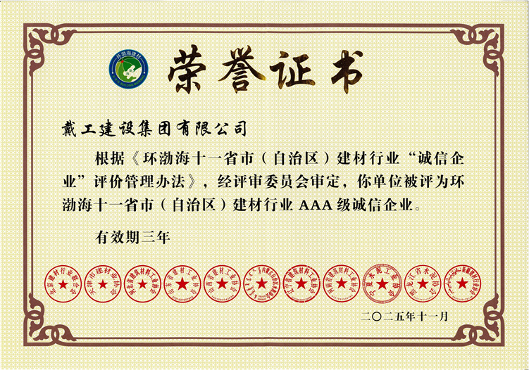 11月26日,環(huán)渤海十一省市(自治區(qū))2025年度“誠信企業(yè)”頒獎(jiǎng)典禮在北京燕京飯店隆重舉行。戴工建設(shè)集團(tuán)憑借其卓越的商業(yè)信譽(yù)、嚴(yán)格的質(zhì)量管理和高度的社會(huì)責(zé)任感,從眾多參評企業(yè)中脫穎而出,榮獲這一區(qū)域性重磅榮譽(yù)。戴工建設(shè)集團(tuán)董事長戴輝先生出席典禮并領(lǐng)取獎(jiǎng)項(xiàng)。