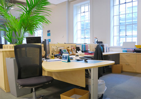 11.辦公桌位置不宜面朝辦公室大門。若是正好面朝辦公室大門,可在之間擺放一盆闊葉植物,因為大門處人來人往,煞氣較重,擺放一盆植物可擋住煞氣。